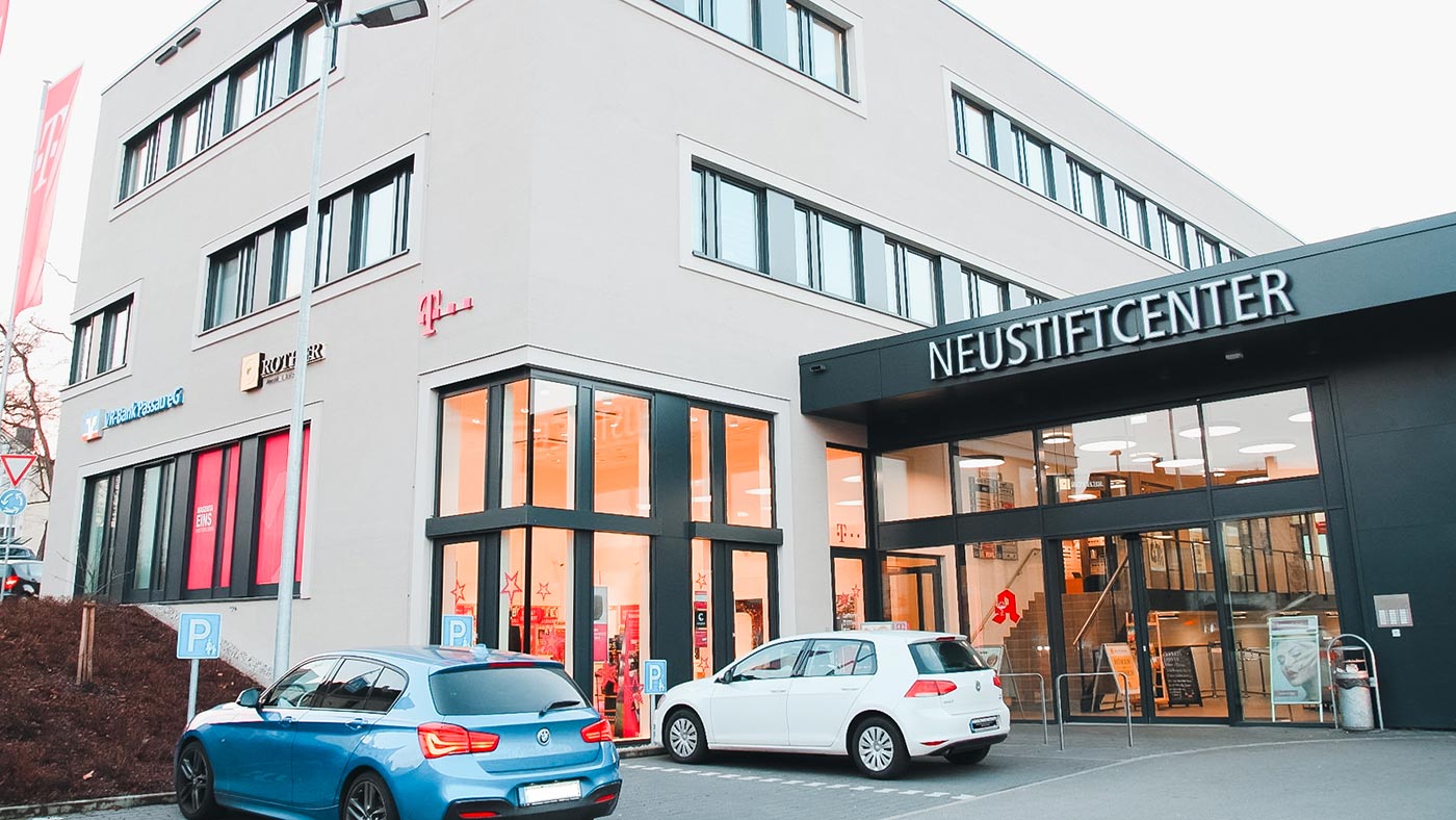 Egal, ob Sie mit dem Auto oder den öffentlichen Verkehrsmitteln anreisen, unsere Praxis ist einfach zu finden. Hier ist einer von mehreren Eingängen zum Passauer Neustiftcenter.